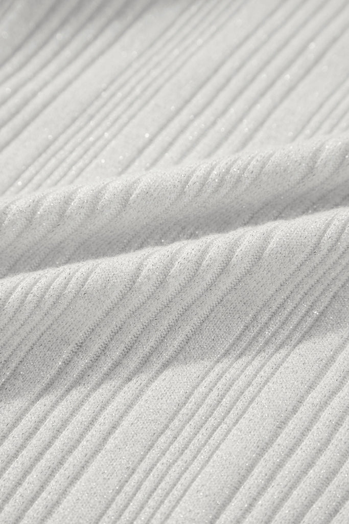 Step into effortless elegance with the Frost Glow Ribbed Cardigan, a timeless layering piece that combines comfort with a hint of sparkle. Crafted with a soft ribbed knit fabric infused with subtle shimmer, this button-down cardigan catches the light in all the right ways.