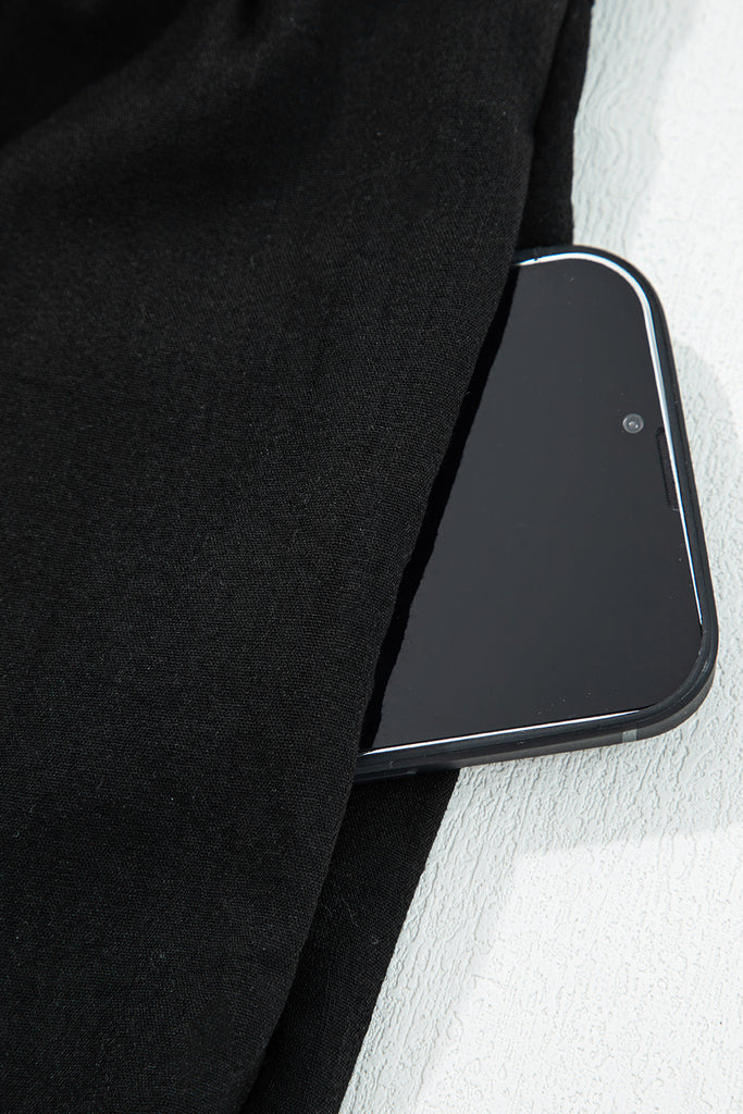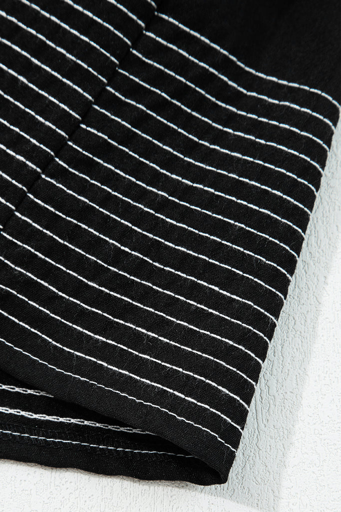 A breezy black tiered dress accented with bold contrast stitching for effort. less charm. The relaxed silhouette, stitched V-neck, and striped cuffs and hem add artisanal detail. Lightweight, easy to wear, and finished with pockets. Perfect from daytime wandering to cozy evenings out. Material: 46% Viscose, 33% Polyester, 21% Polyamide. Imported.