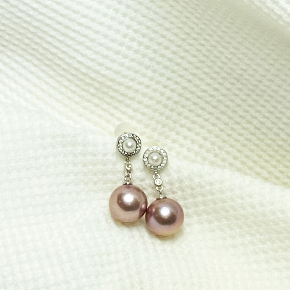 Pendientes colgantes con doble perla de agua dulce Connie