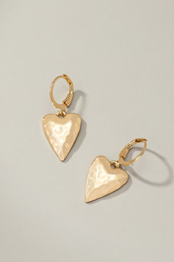 Agregue un poco de amor a sus oídos con estos aretes tipo argolla con forma de corazón martillado. Estos aretes, la combinación perfecta de alegría y estilo, seguramente llamarán la atención y harán una declaración. Muestra tu sentido único de la moda con este peculiar accesorio.