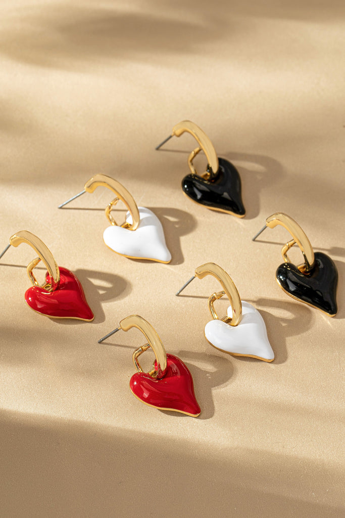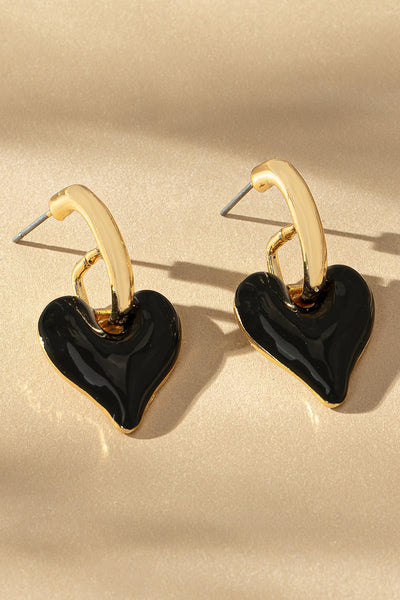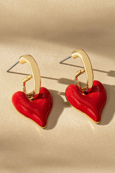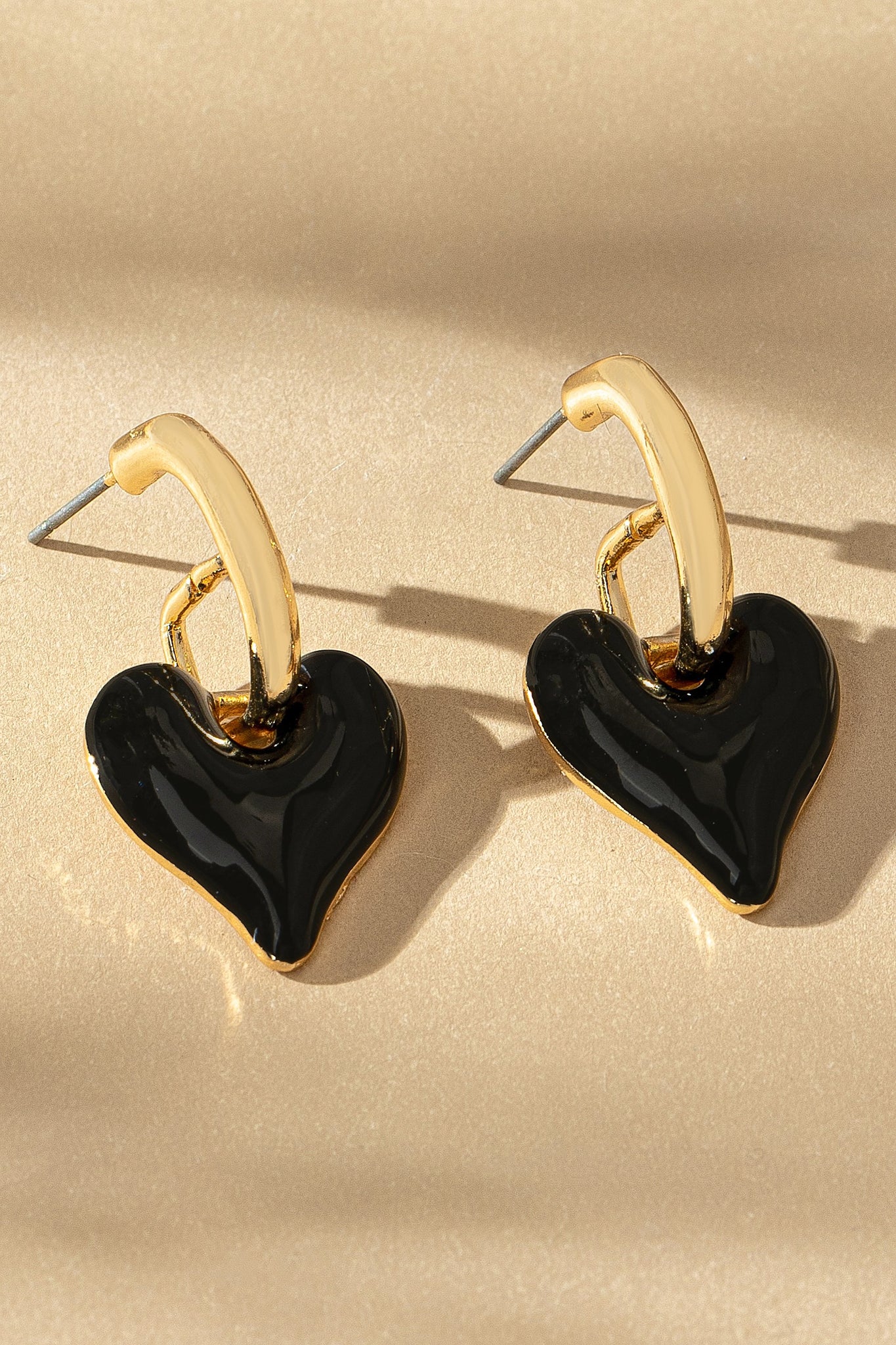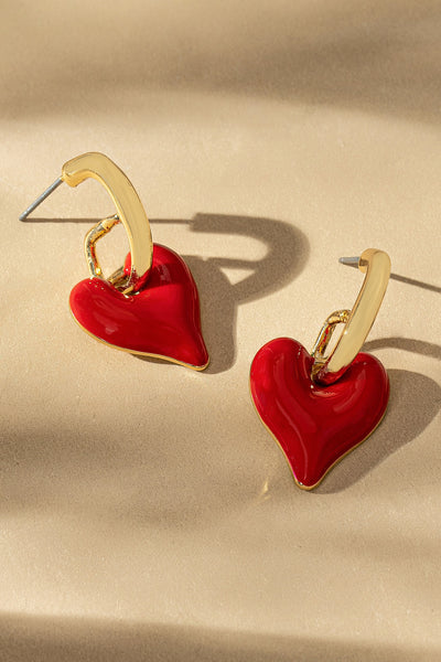 Enamel puffy heart charms dangle from sleek huggie hoops, adding a playful and romantic touch to your everyday style.