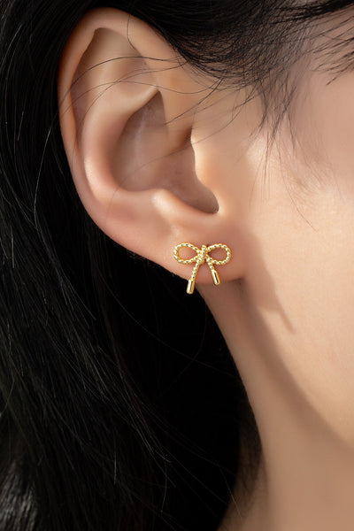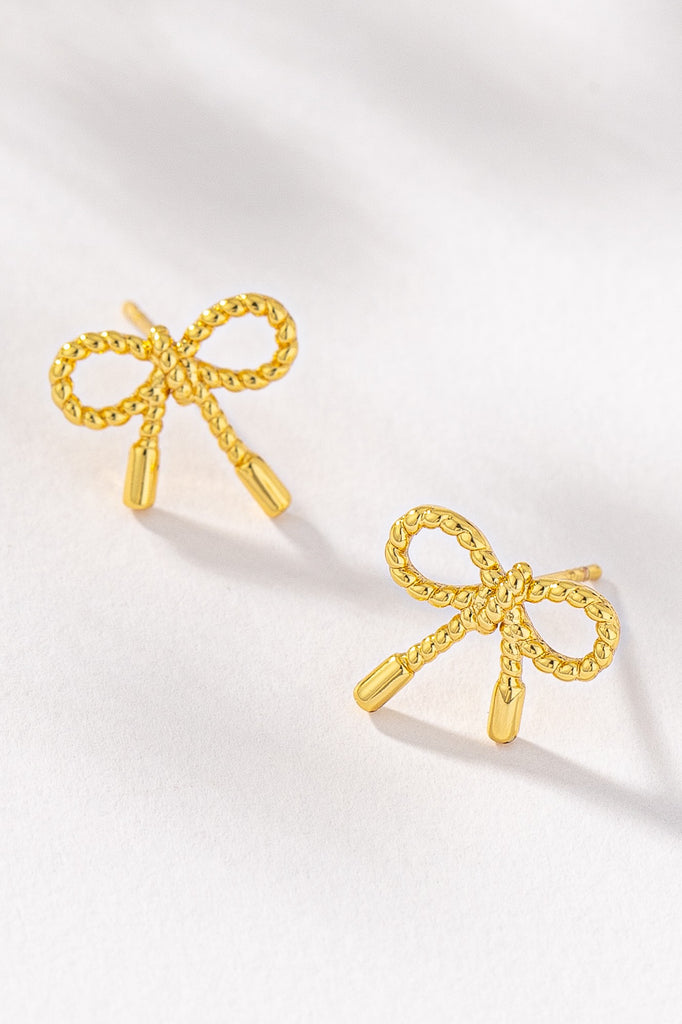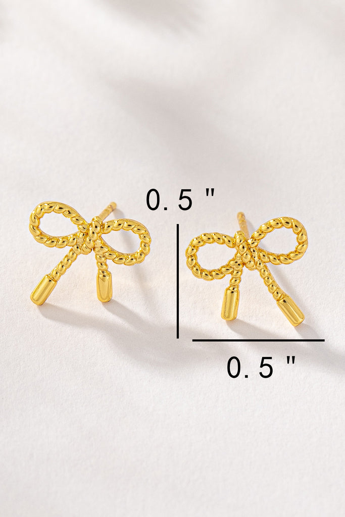 Elevate your style with these elegant small textured brass bow stud earrings. Perfect for adding a touch of sophistication to any outfit, these earrings feature a delicate bow design crafted from high-quality brass with a textured finish. Ideal for both casual and formal occasions.