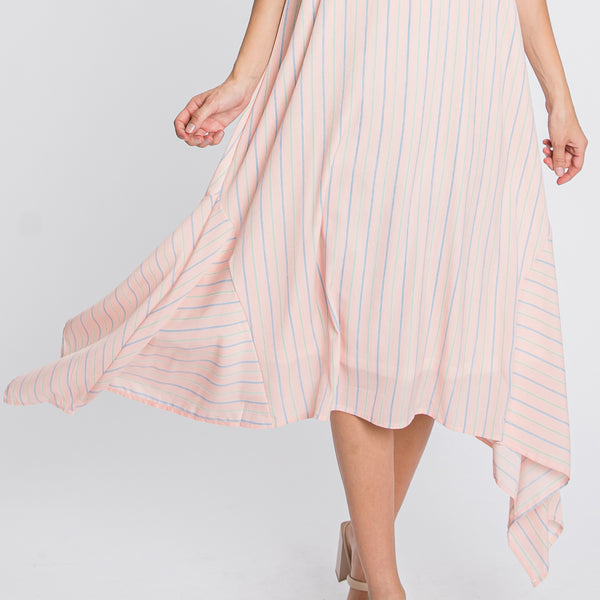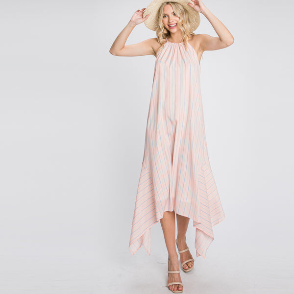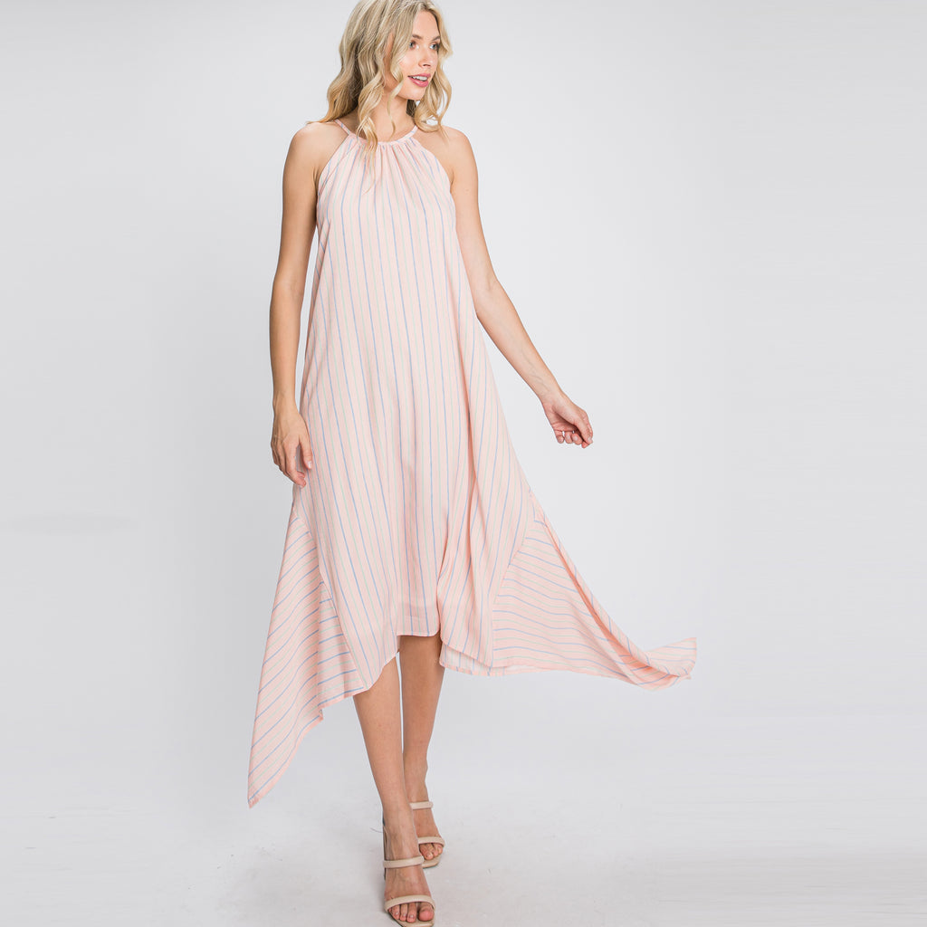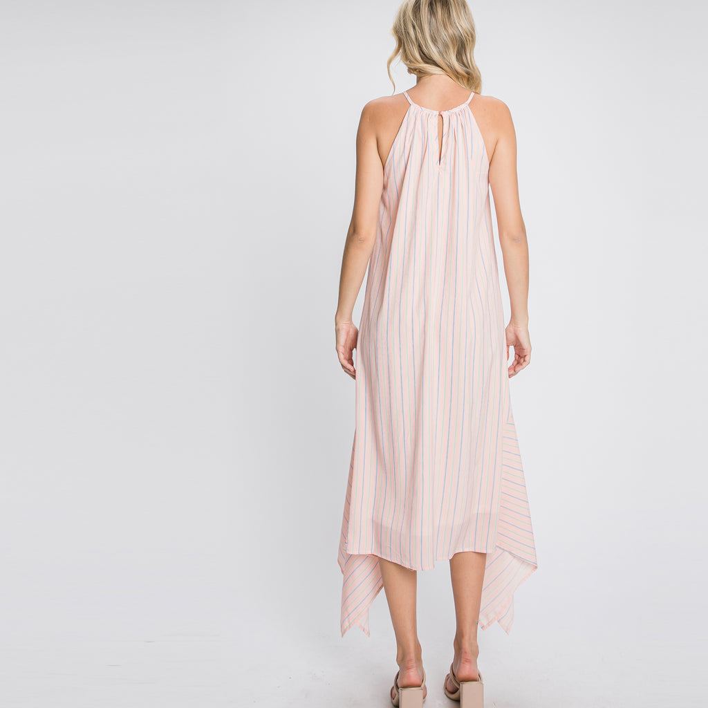 Imagínese caminando por el paseo marítimo con nuestro vestido Soft Embrace a rayas y fluyendo maravillosamente mientras se pavonea con confianza. ¡Este vestido aireado y fluido es una pieza imprescindible este verano! ¡Combínalo con aretes llamativos y un bolso grande y sandalias cómodas pero elegantes para lograr un look que envidiará esta temporada!