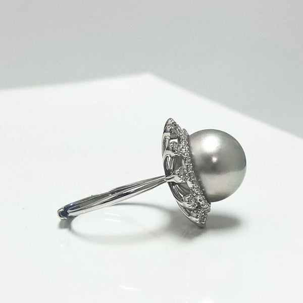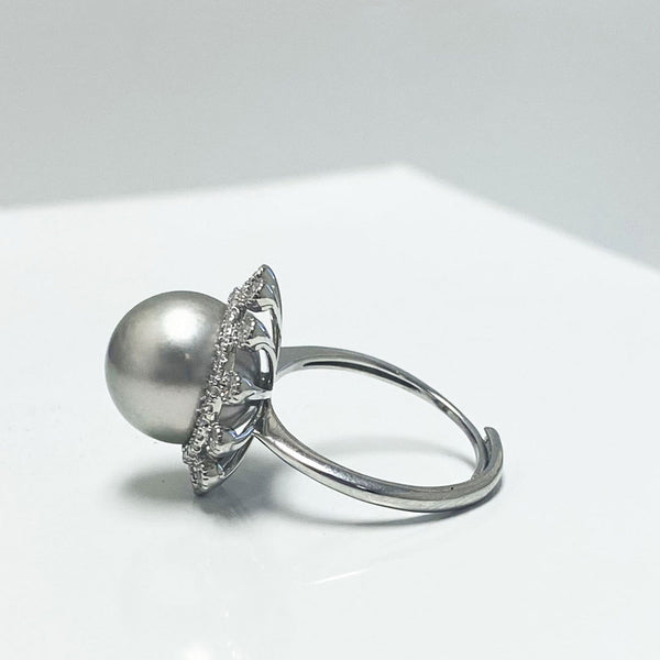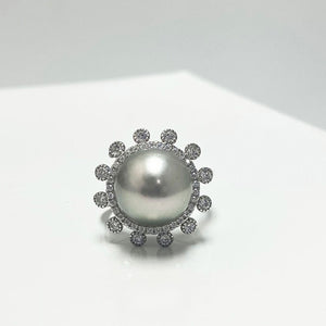 Just like the sun, our Tahitian Pearl Ring features a stellar sun shaped design of dainty stones beaming light around the pearl, making it the brightest entity on your beautiful finger.