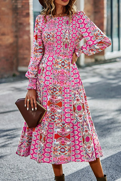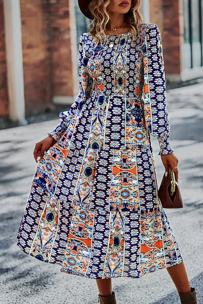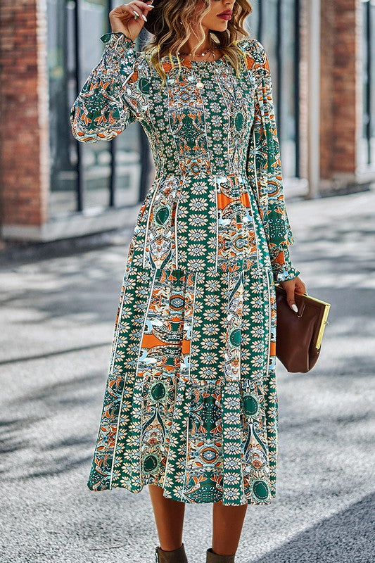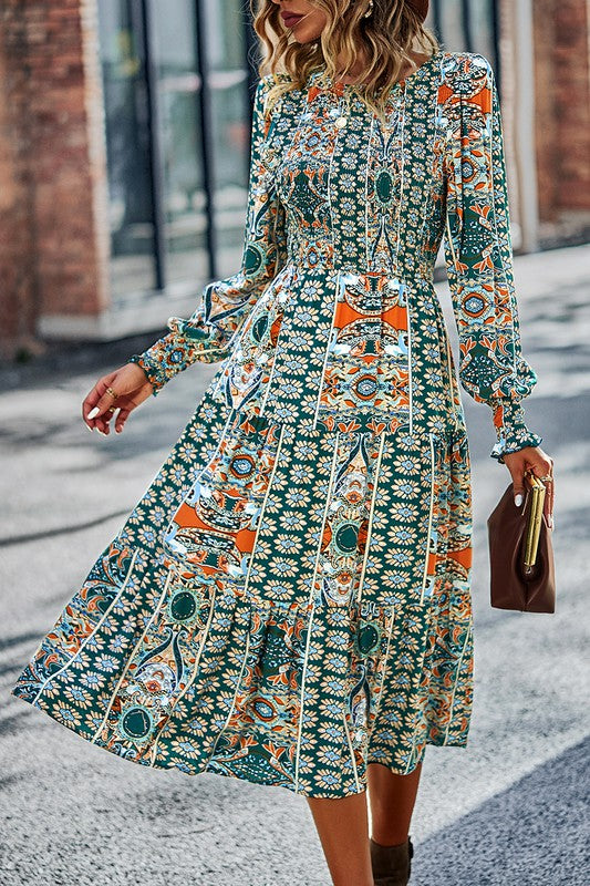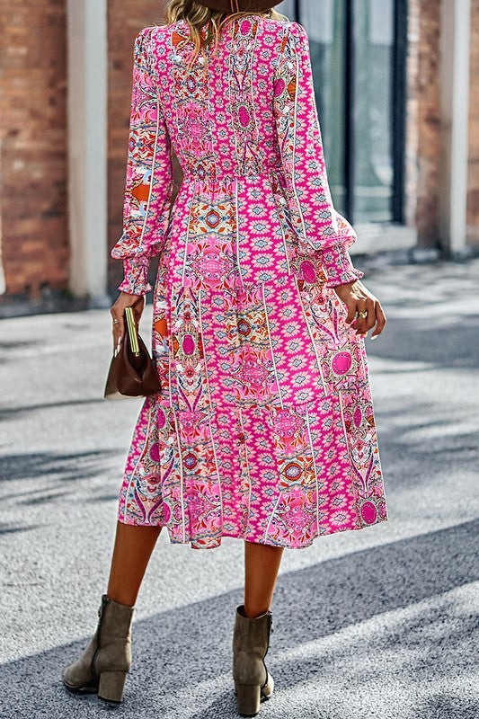 Boho-Boho Print Midi Dress