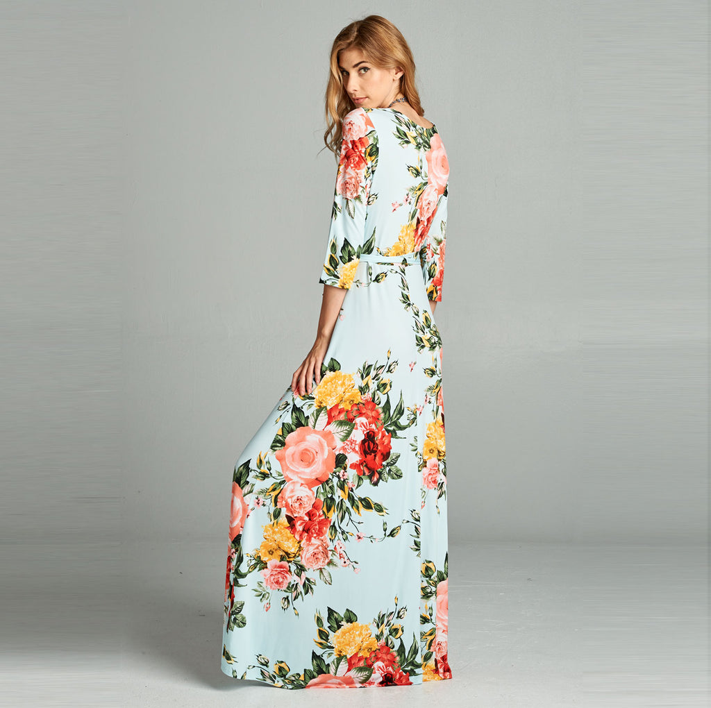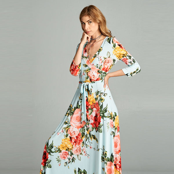 Mint Rosy Garden Venechia Maxi Wrap Dress