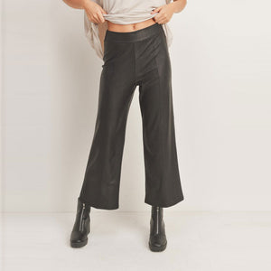 Make a statement when you step out in these faux leather pants, our high waist wide leg pant is polished and tailorerd, cropped just above the ankle with front seams details!