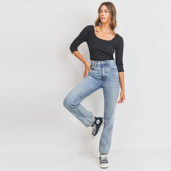 Easy like Sunday morning is our basic long sleeve top. Versatile enough to wear on its own once the temps begin to rise but also so easy to layer. Style with mom jeans, a scarf, and sneakers for an casual care free vibe.