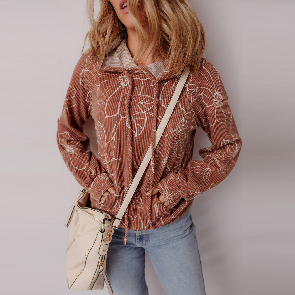 Cozy meets chic in our Rust Blossom Hoodie, crafted in a soft ribbed knit with a warm rust hue and delicate floral outlines. Featuring a relaxed fit, drawstring hood, and elasticized hem and cuffs, this hoodie is perfect for layering on cool days. The subtle floral design adds a feminine touch to its casual style, making it easy to pair with denim for everyday wear or leggings for a laid-back weekend look.
