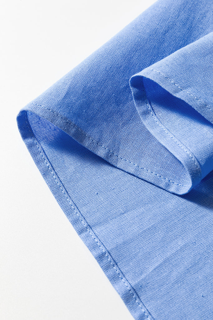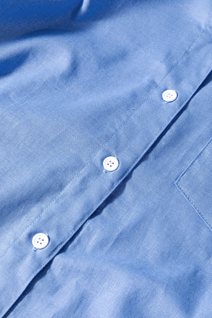 Breathe easy in the Seaside Linen Blend Button-Down, crafted from a premium blend of 85% cotton and 15% linen for the perfect balance of softness and airy comfort. With its oversized fit, button-front design, and a classic chest pocket, this sky-blue shirt is endlessly versatile. Dress it up with tailored pants for an effortless office look, or pair it with denim for relaxed weekend vibes. Lightweight yet durable, it’s your go-to piece for chic, all-day wear.