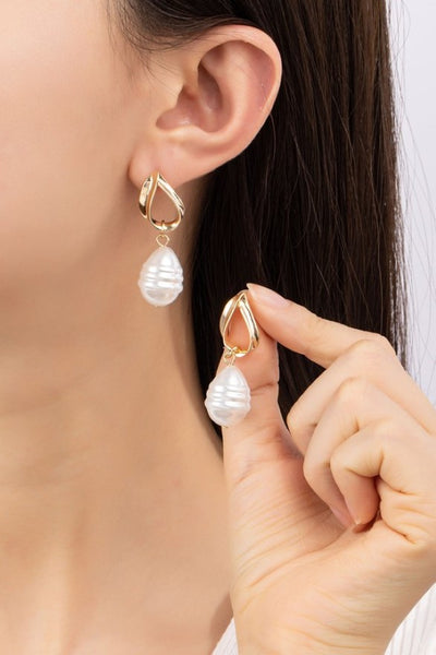 Add a touch of elegance to your look with these teardrop hoop earrings featuring a pearl drop. The graceful teardrop shape combined with the classic pearl detail makes these earrings perfect for both sophisticated and casual styles.
