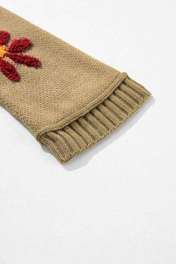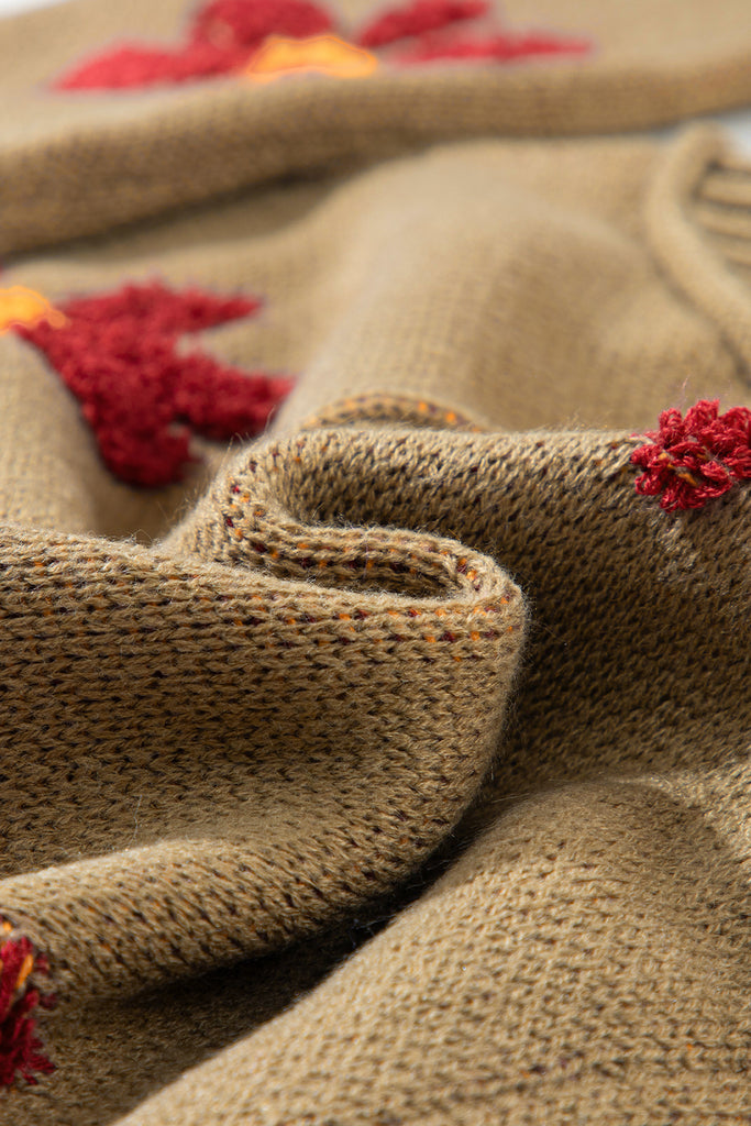 Embrace effortless charm with the Wildflower Bloom Sweater, a cozy knit designed with bold embroidered florals that bring a pop of personality to your look. The earthy olive base pairs beautifully with vibrant red and gold flower motifs, making this sweater stand out while still being versatile. Featuring a relaxed fit with dropped shoulders, ribbed trims, and a flattering V-neckline, it offers both comfort and style for everyday wear. Perfect to pair with denim shorts and boots for a boho-inspired vibe, or with jeans for a casual yet chic look, this sweater is a must-have for your seasonal wardrobe.