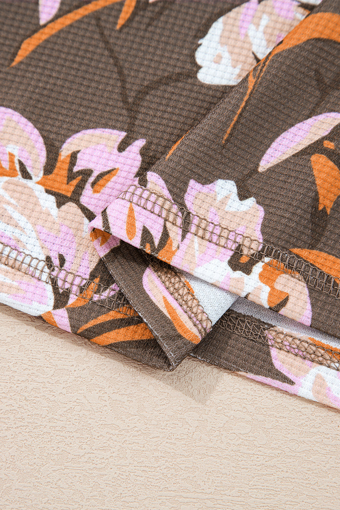 The Wildflower Meadow Top brings the perfect blend of comfort and charm to your everyday wardrobe. Crafted in a lightweight waffle knit, this long sleeve top features a flattering earthy brown base accented with blooming florals in soft pinks, whites, and hints of orange. The floral print adds a romantic, feminine vibe while the classic crew neckline and fitted sleeves keep it effortlessly wearable.